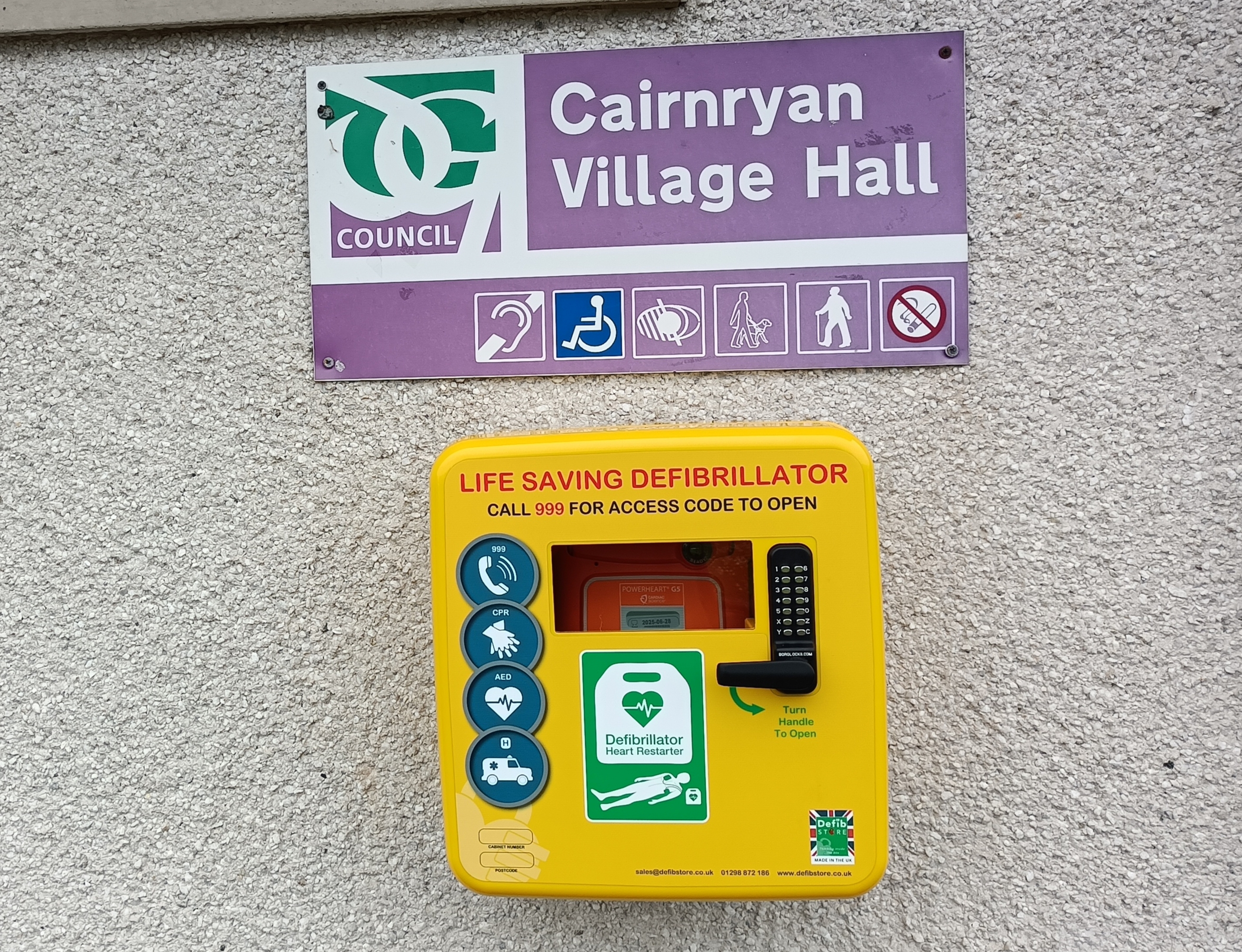 defibs both originally installed by the Cairnryan Hall Welfare &